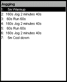 | Jogging | 10 minute jog initermixed with short running bursts, and warmup and cool down phases. |