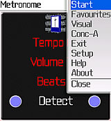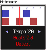 Mobile phone application providing metronome beats at standard musical tempo settings with optional beginning of bar sound and auto detect tempo function.