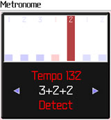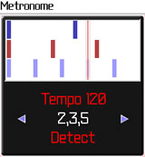 Detect Tempo: The application will automatically detect tempo when the 0 key is pressed several times. Listen to some music, press the 0 key in time to the music, and the detected tempo will be displayed. When you stop pressing the 0 key, the metronome tempo will automatically synchronize to the detected beat. For convenience, it may be possible to use the *, # or [space] keys instead, or press 'Detect' on touch screens.
