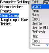 Favourite Settings: Create and save your own settings to be used for different pieces of music. You can create, edit, copy, paste, delete and start.